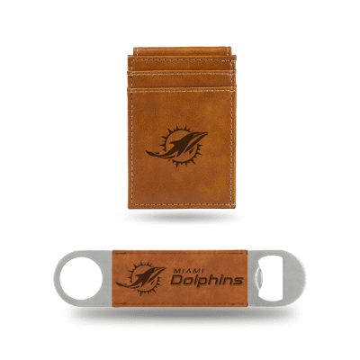 Miami Dolphins Brown Laser Engraved Front Pocket Wallet & Bar Blade