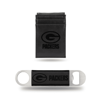 Green Bay Packers Black Laser Engraved Front Pocket Wallet & Bar Blade