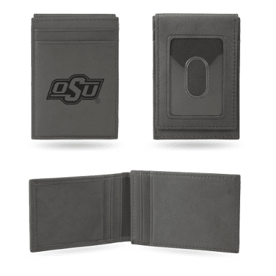 Oklahoma State Cowboys Gray Laser Engraved Front Pocket Wallet
