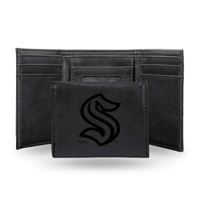 Seattle Kraken Black Laser Engraved Tri-Fold Wallet