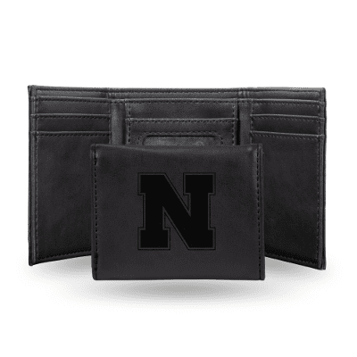 Nebraska Cornhuskers Black Laser Engraved Tri-Fold Wallet