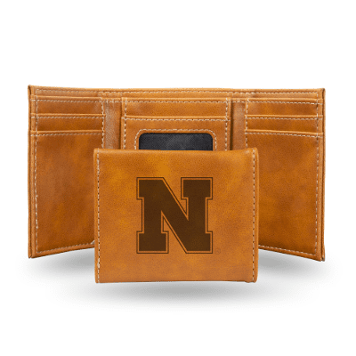 Nebraska Cornhuskers Brown Laser Engraved Tri-Fold Wallet