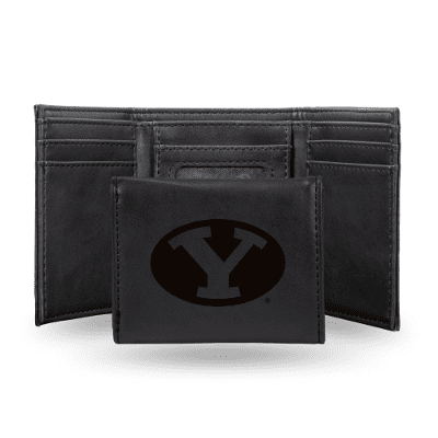 BYU Cougars Black Laser Engraved Tri-Fold Wallet