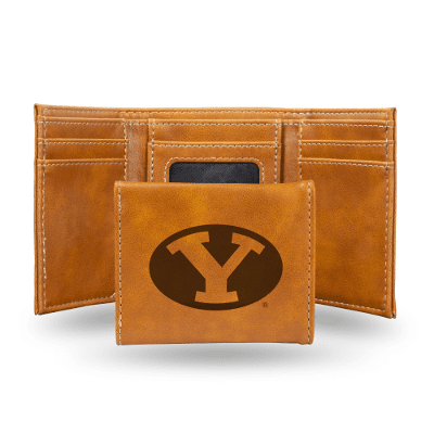 BYU Cougars Brown Laser Engraved Tri-Fold Wallet
