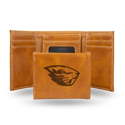 Oregon State Beavers Brown Laser Engraved Tri-Fold Wallet