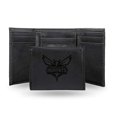 Charlotte Hornets Black Laser Engraved Tri-Fold Wallet