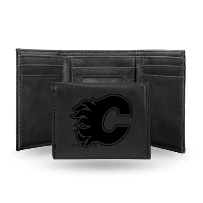 Calgary Flames Black Laser Engraved Tri-Fold Wallet
