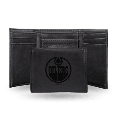 Edmonton Oilers Black Laser Engraved Tri-Fold Wallet