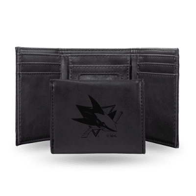 San Jose Sharks Black Laser Engraved Tri-Fold Wallet
