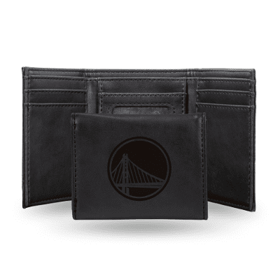 Golden State Warriors Black Laser Engraved Tri-Fold Wallet
