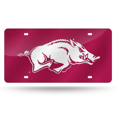 Arkansas Razorbacks Red W/ White Hog 12" x 6" Laser Cut Tag For Car/Truck/SUV