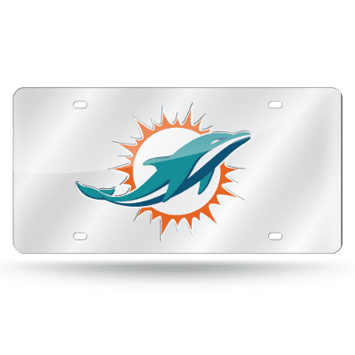Miami Dolphins Silver 12" x 6" Silver Laser Cut Tag For Car/Truck/SUV