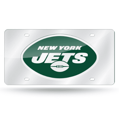 New York Jets Silver 12" x 6" Silver Laser Cut Tag For Car/Truck/SUV