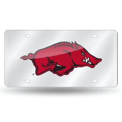 Arkansas Razorbacks Silver 12" x 6" Silver Laser Cut Tag For Car/Truck/SUV