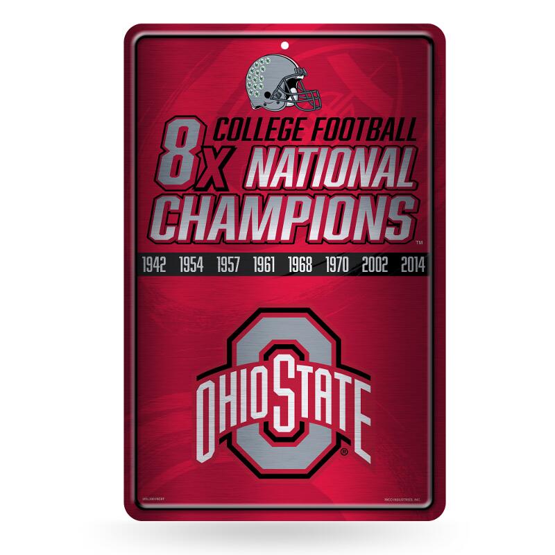 Ohio State Buckeyes 8 Time College Football Champs Large Metal Wall Sign