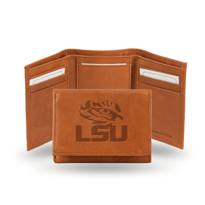 LSU Tigers Brown Embossed Genuine Leather Tri-Fold Wallet