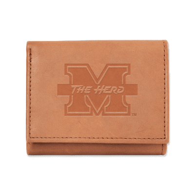 Marshall Thundering Herd Brown Embossed Genuine Leather Tri-Fold Wallet
