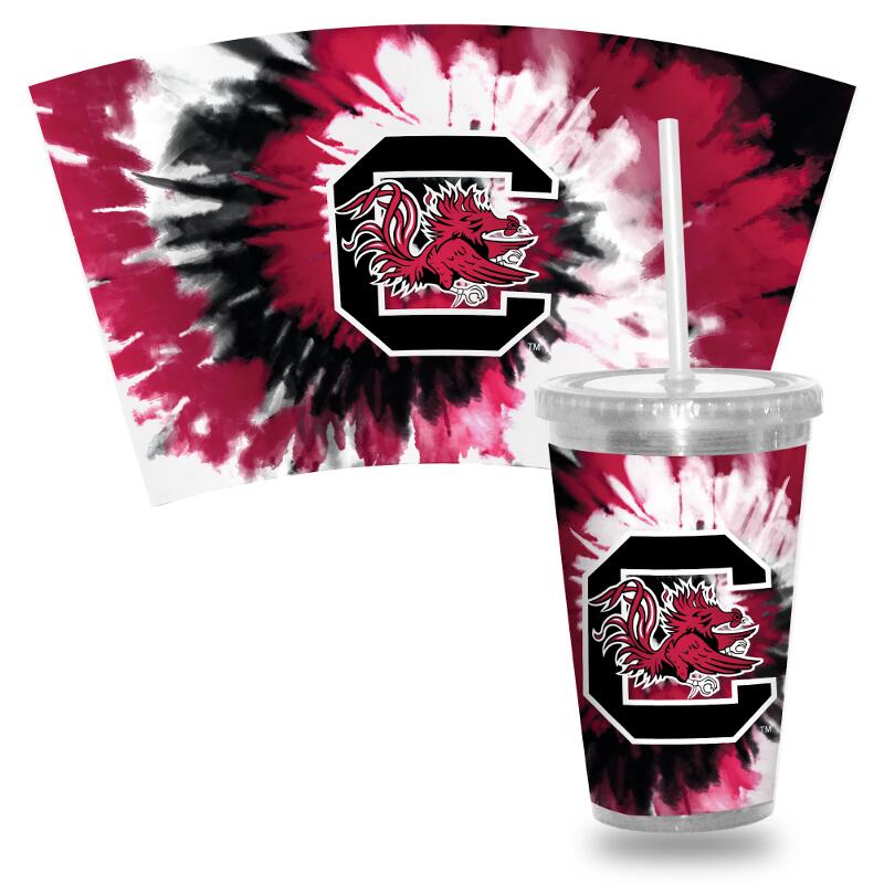 South Carolina Gamecocks Metallic Tye Dye Clear Tumbler W/Straw