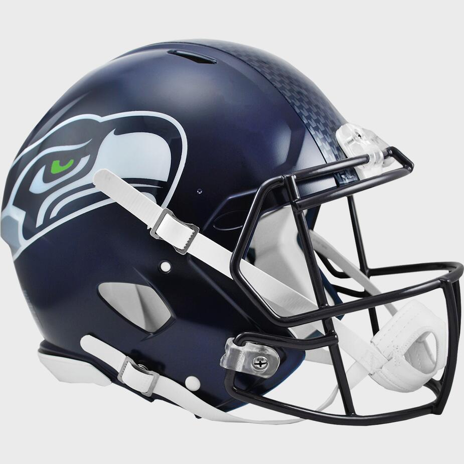 Riddells Revolution Speed helmet has taken the football world by storm. With a distinctive, aggressive shell design, the Speed helmet is being adopted by premier athletes at a furious pace. Large size shell, special order facemask worn by most of the star players who choose to wear the Speed, internal padding reflective of the Speed Classic design, 4-pt. chinstrap. Official team colors and decals. Approx. 10 tall.