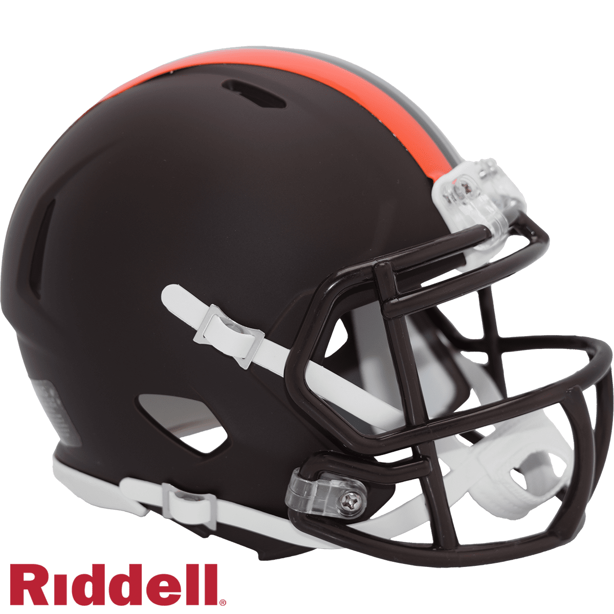 Cleveland Browns Mini Speed Football Helmet. The ultimate NFL mini speed football helmet collectible, perfect NFL mini speed football helmets for autographs and collectors. Mini Speed Football Helmet with great graphics. Official NFL Mini Speed Football Helmet with official NFL team decal. ABS plastic Mini Speed Football Helmet shells with plastic facemask. Realistic interior foam padding, vinyl-leather chin strap. This is an affordable NFL football helmet for the true fan. Size: 1/2 scale versions of NFL football helmets. Size: 6"(L), 4½"(W), 5"(H) - (NOT FOR WEARING).
