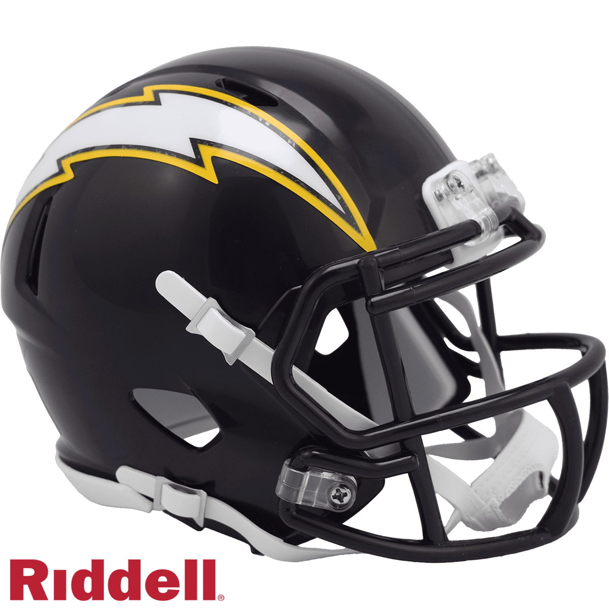 Los Angeles Chargers Mini Speed Football Helmet. The ultimate NFL mini speed football helmet collectible, perfect NFL mini speed football helmets for autographs and collectors. Mini Speed Football Helmet with great graphics. Official NFL Mini Speed Football Helmet with official NFL team decal. ABS plastic Mini Speed Football Helmet shells with plastic facemask. Realistic interior foam padding, vinyl-leather chin strap. This is an affordable NFL football helmet for the true fan. Size: 1/2 scale versions of NFL football helmets. Size: 6"(L), 4½"(W), 5"(H) - (NOT FOR WEARING).