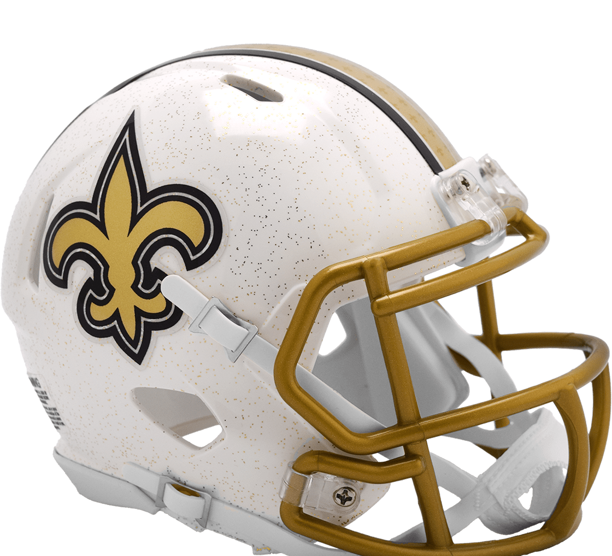 New Orleans Saints Mini Speed Football Helmet. The ultimate NFL mini speed football helmet collectible, perfect NFL mini speed football helmets for autographs and collectors. Mini Speed Football Helmet with great graphics. Official NFL Mini Speed Football Helmet with official NFL team decal. ABS plastic Mini Speed Football Helmet shells with plastic facemask. Realistic interior foam padding, vinyl-leather chin strap. This is an affordable NFL football helmet for the true fan. Size: 1/2 scale versions of NFL football helmets. Size: 6"(L), 4½"(W), 5"(H) - (NOT FOR WEARING).