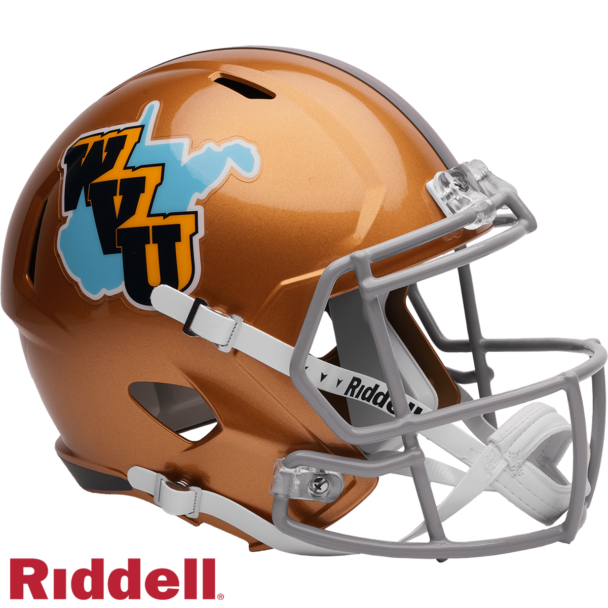 West Virginia Mountaineers Mini Speed College Football Helmet. The ultimate NCAA College mini speed football helmet collectible, perfect NCAA mini speed football helmets for autographs and collectors. Mini Speed Football Helmet with great graphics. Official NCAA Mini Speed Football Helmet with official NCAA team decal. ABS plastic Mini Speed Football Helmet shells with plastic facemask. Realistic interior foam padding, vinyl-leather chin strap. This is an affordable NCAA football helmet for the true fan. Size: 1/2 scale versions of NCAA football helmets. Size: 6"(L), 4½"(W), 5"(H) - (NOT FOR WEARING).