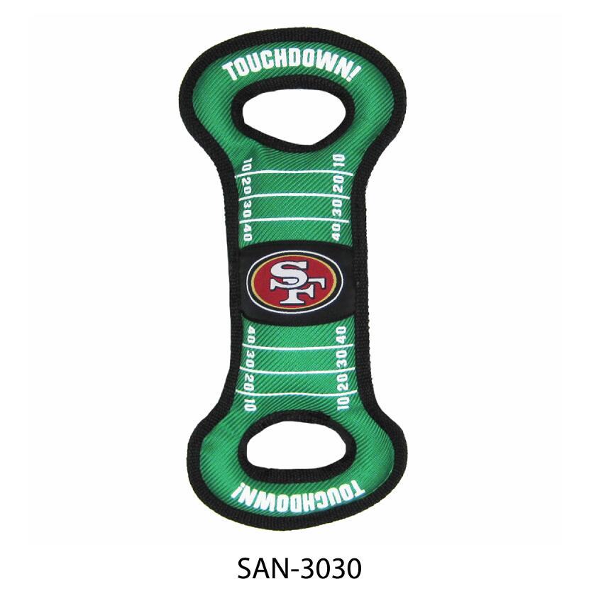 Tough Nylon tug toy, Polyfill and squeaker, Nylon web binding, Team woven logo over screened football field graphics This item cannot be returned for hygeniec reasons.