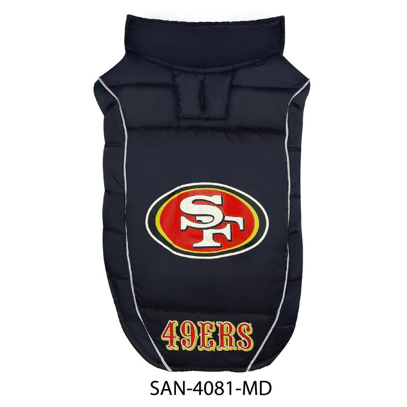 NFL FASHIONABLE and WARM COAT - CUTE & ADORABLE NFL DOG PUFFER VEST featuring your favorite NFL team logo. Designed to STAND-OUT in the crowd and keep your fur-baby WARM!! - - - You are sure to receive MANY COMPLIMENTS from all your fellow team fans! Keep your pet warm in a cute and stylish way. Adjustable for Custom Fit. Strap on closure under the belly, for an adjustable and customizable fit. This item cannot be returned for hygeniec reasons.