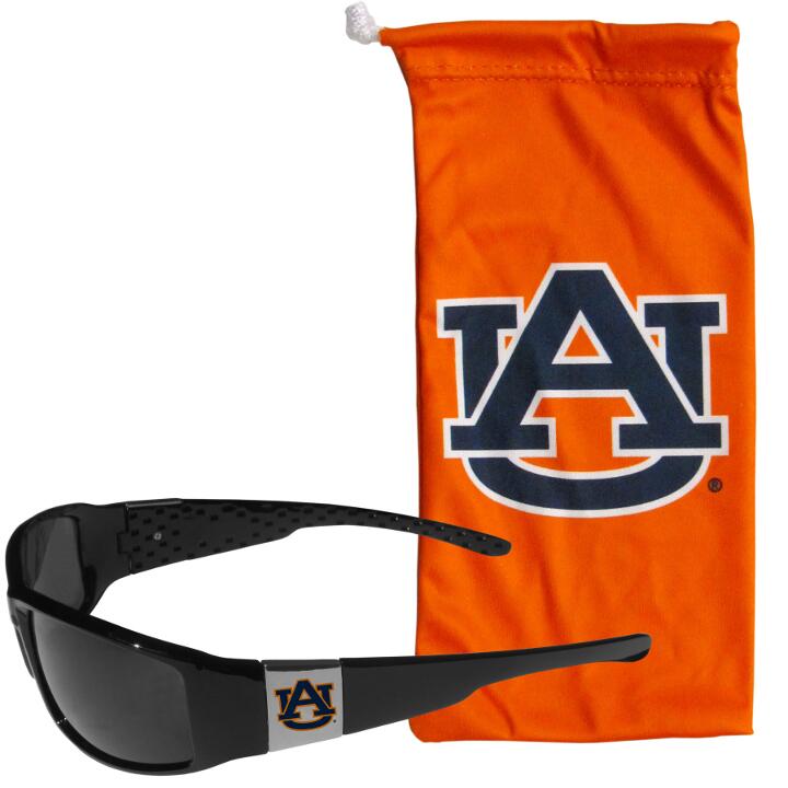 These designer inspired frames have a sleek look in all black with high-polish chrome Auburn Tigers shield on each arm with a printed logo. The shades are perfect any outdoor activity like; golfing, driving, hiking, fishing or cheering on the team at a tailgating event or an at home game day BBQ with a lens rating of 100% UVA/UVB for maximum UV protection. The high-quality frames are as durable as they are fashionable and with their classic look they are perfect fan accessory that can be worn everyday for every occasion. The shades come with a colorful, microfiber team carrying bag that can also be used as a lens cleaner.