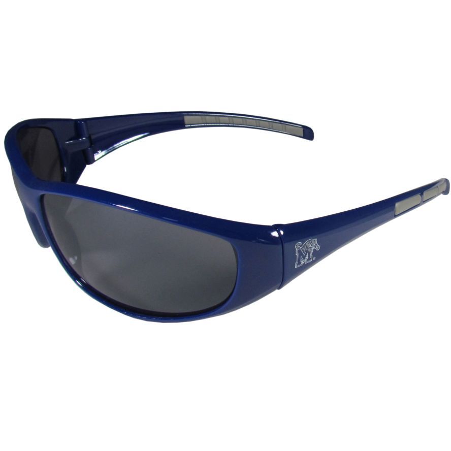 Whether you're in the stadium cheering your Memphis Tigers to victory, driving or just lounging by the pool these stylish shades are the perfect accessory with a 100% UVA/UVB rating for maximum UV protection. The light-weight frames are built to last with flex hinges for comfort and durability. The colorful rubber grips on the arms of these fashionable sunglasses make them perfect for someone with an active lifestyle. Whether you are hiking, fishing, boating, running on the beach, golfing or playing your favorite sport these designer frames will stay in place for all of your outdoor activities. Our wrap sunglasses are true quality eyewear at an affordable price. Their classic wrap style is accented with bright team colors and team logos on both arms so you can show off your die-hard team pride while protecting your eyes from those bright sun rays.