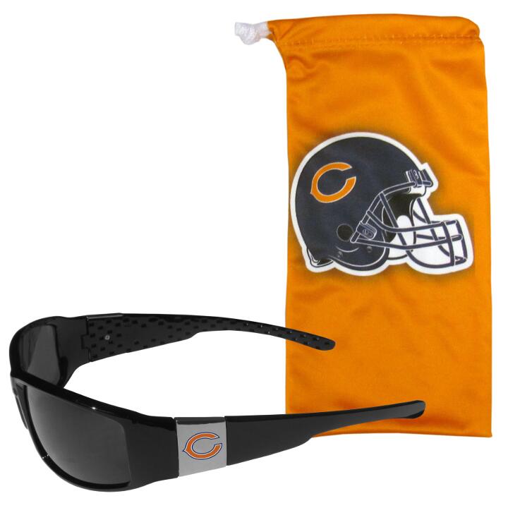 These designer inspired frames have a sleek look in all black with high-polish chrome Chicago Bears shield on each arm with a printed logo. The shades are perfect any outdoor activity like; golfing, driving, hiking, fishing or cheering on the team at a tailgating event or an at home game day BBQ with a lens rating of 100% UVA/UVB for maximum UV protection. The high-quality frames are as durable as they are fashionable and with their classic look they are perfect fan accessory that can be worn everyday for every occasion. The shades come with a colorful, microfiber team carrying bag that can also be used as a lens cleaner.