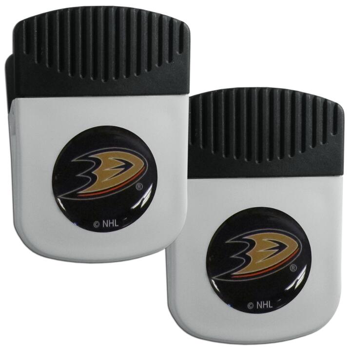 Use this attractive clip magnet to hold memos, photos or appointment cards on the fridge or take it down keep use it to clip bags shut. The magnet features a Anaheim Ducks dome emblem.