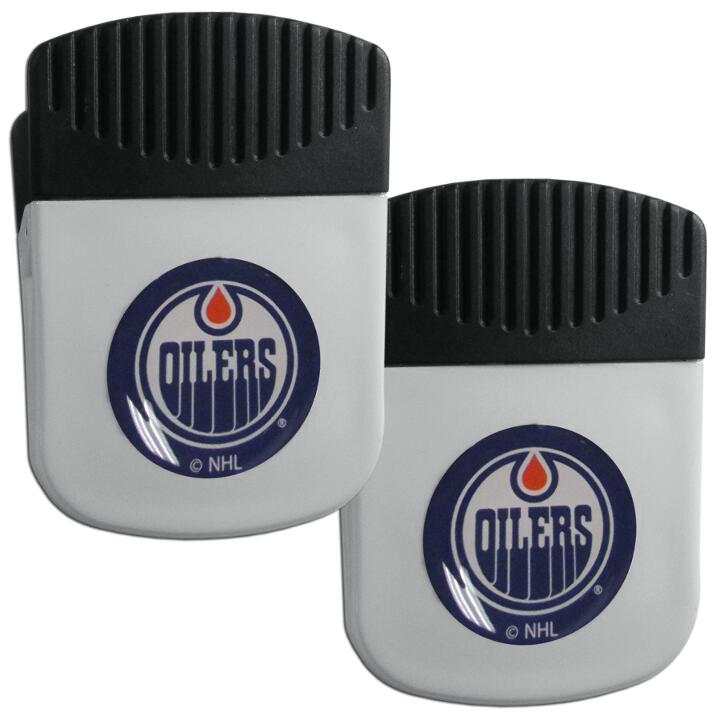Use this attractive clip magnet to hold memos, photos or appointment cards on the fridge or take it down keep use it to clip bags shut. The magnet features a Edmonton Oilers dome emblem.