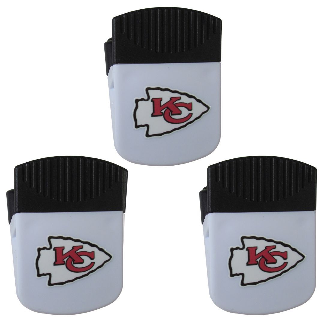 Use this attractive clip magnet to hold memos, photos or appointment cards on the fridge or take it down keep use it to clip bags shut. The magnet features a printed Kansas City Chiefs logo.