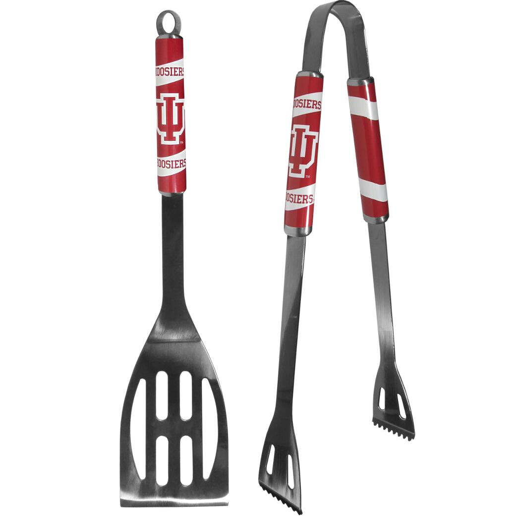 This stainless steel 2 pc BBQ set is a tailgater's best friend. The colorful and large team graphics let's everyone know you are a fan! The set in includes a spatula and tongs with the Indiana Hoosiers proudly display on each tool.