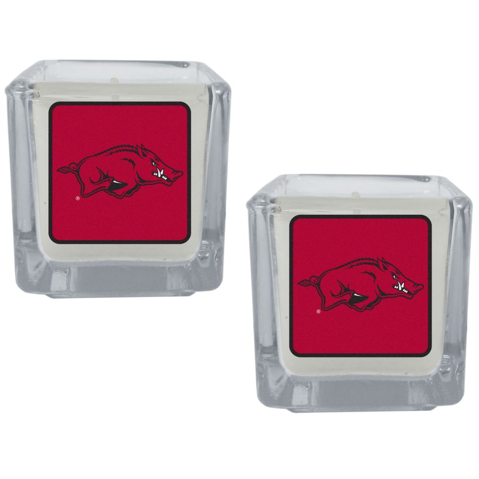 Our candle set features 2 lightly vanilla scented candles with the Arkansas Razorbacks logo expertly printed on front. The candles are 2 inches tall in the votive style.