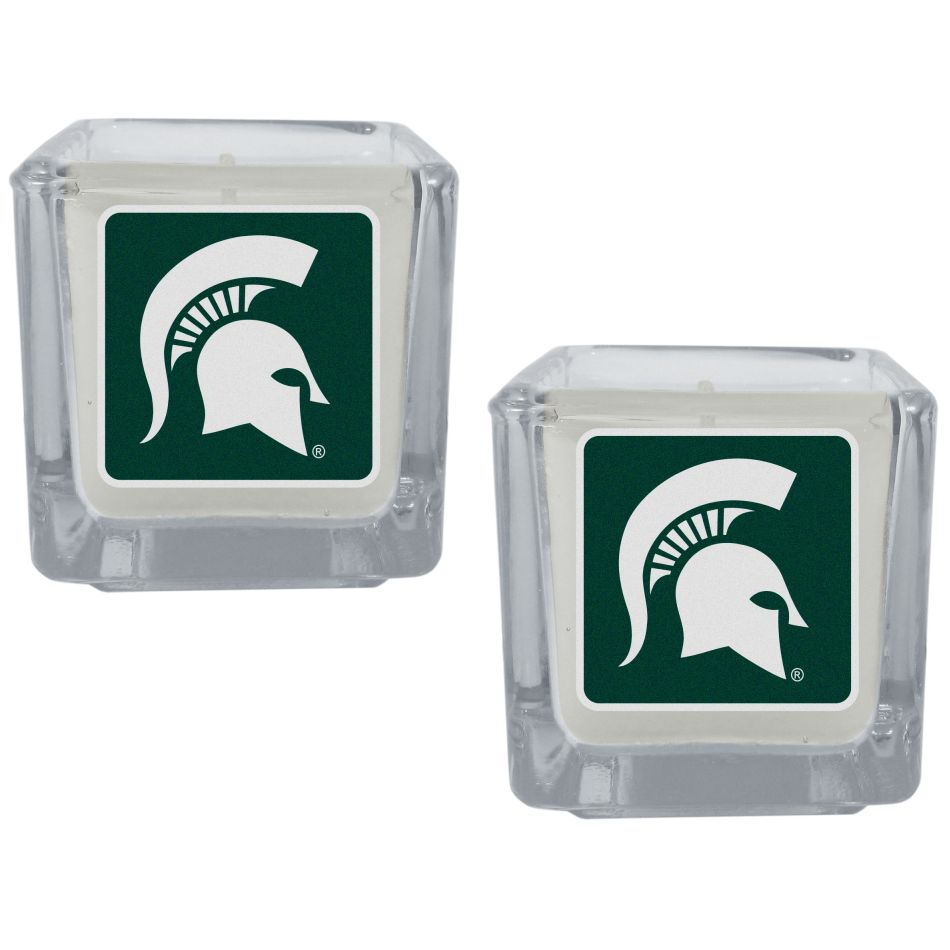 Our candle set features 2 lightly vanilla scented candles with the Michigan State Spartans logo expertly printed on front. The candles are 2 inches tall in the votive style.