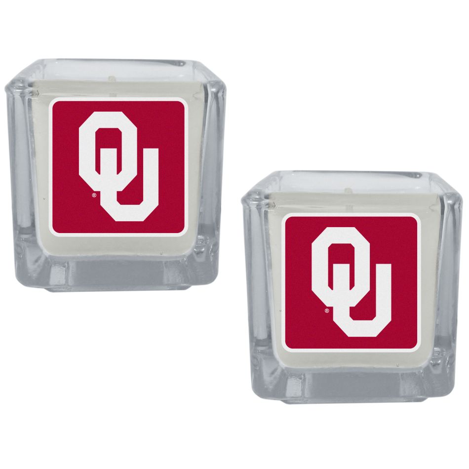 Our candle set features 2 lightly vanilla scented candles with the Oklahoma Sooners logo expertly printed on front. The candles are 2 inches tall in the votive style.
