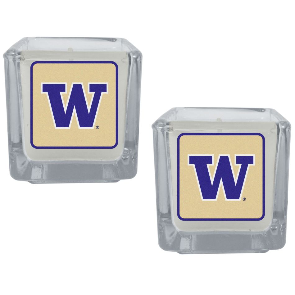 Our candle set features 2 lightly vanilla scented candles with the Washington Huskies logo expertly printed on front. The candles are 2 inches tall in the votive style.