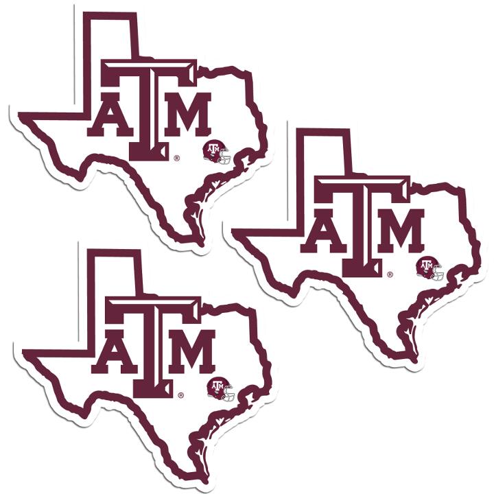 It's a home state decal with a sporty twist! This Texas A&M Aggies decal feature the team logo over a silhouette of the state in team colors and a heart marking the home of the team. The decal is approximately 5 inches on low tack vinyl.