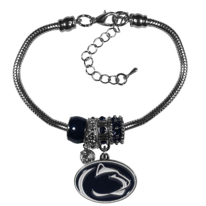 We have combined the wildly popular Euro style beads with your favorite team to create our Penn St. Nittany Lions bead bracelet. The 7.5 inch snake chain with 2 inch extender features 4 Euro beads with enameled team colors and rhinestone accents with a high polish, nickel free charm and rhinestone charm. Perfect way to show off your team pride.
