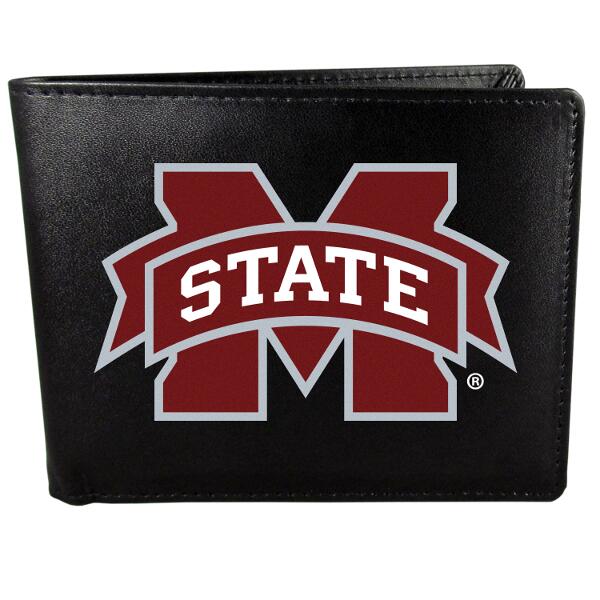 Sports fans do not have to sacrifice style with this classic bi-fold wallet that sports the Mississippi St. Bulldogs extra large logo. This men's fashion accessory has a leather grain look and expert craftmanship for a quality wallet at a great price. The wallet features inner credit card slots, windowed ID slot and a large billfold pocket. The front of the wallet features a printed team logo.