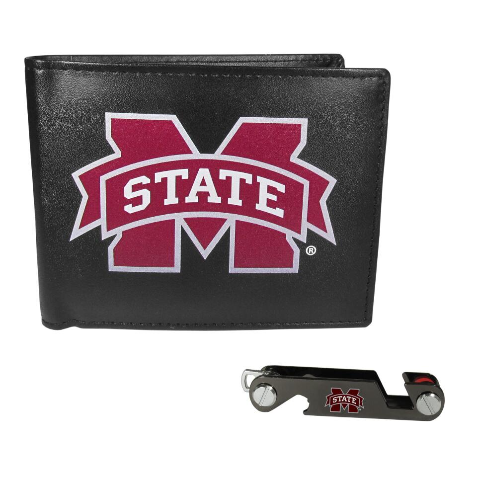 Sports fans do not have to sacrifice style with this classic bi-fold wallet that sports the Mississippi St. Bulldogs extra large logo. This men's fashion accessory has a leather grain look and expert craftmanship for a quality wallet at a great price. The wallet features inner credit card slots, windowed ID slot and a large billfold pocket. Comes with our innovative key organizer that stores your keys in a compact, easy to access bundle with Swiss style engineering. You can load up to 10 keys that zipper back into the organizer so that you never have to deal with keys poking you in your pocket, damaging your purse or simply creating a ton of noise. There is a handy loop piece to attach your larger car key or fob.