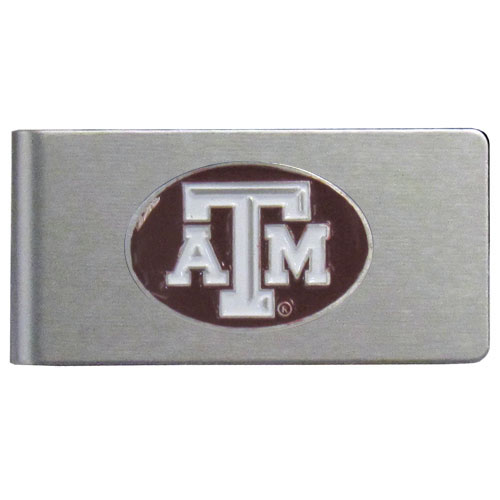 Our brushed metal money clip has classic style and functionality. The attractive clip features a metal Texas A&M Aggies emblem with expertly enameled detail