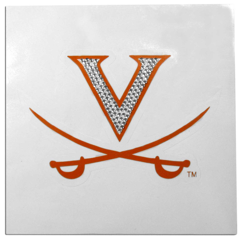 Travel to the game in style! These 6 inch vinyl decals have crystal borders that shimmer and shine your Virginia Cavaliers pride. The crisp team graphics and crystal come on a single sheet for easy application to your car or your window.