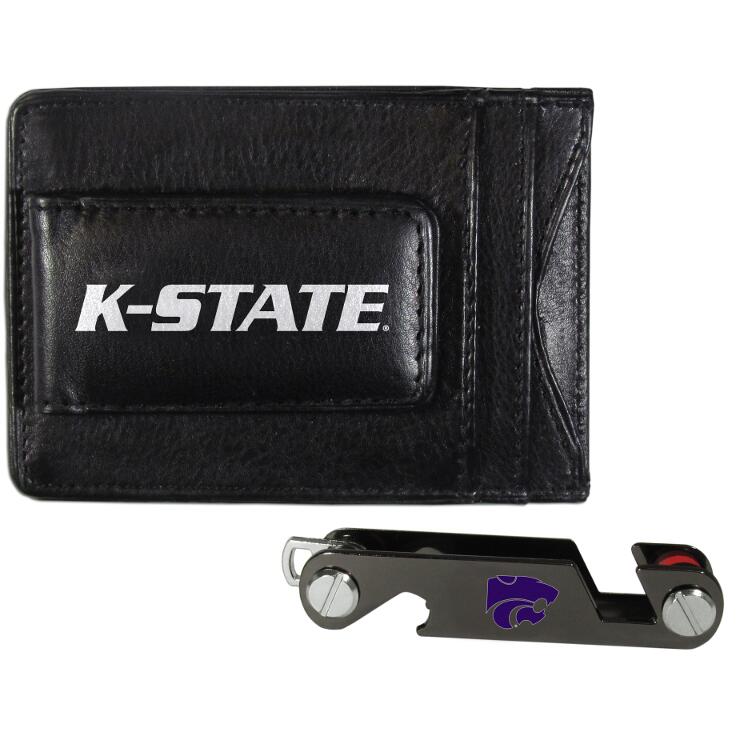 This super slim leather wallet lets you have all the benefits of a money clip while keeping the organization of a wallet. On one side of this front pocket wallet there is a strong, magnetic money clip to keep your cash easily accessible and the Kansas St. Wildcats team logo on the front. Comes with our innovative key organizer that stores your keys in a compact, easy to access bundle with Swiss style engineering. You can load up to 10 keys that zipper back into the organizer so that you never have to deal with keys poking you in your pocket, damaging your purse or simply creating a ton of noise. There is a handy loop piece to attach your larger car key or fob.