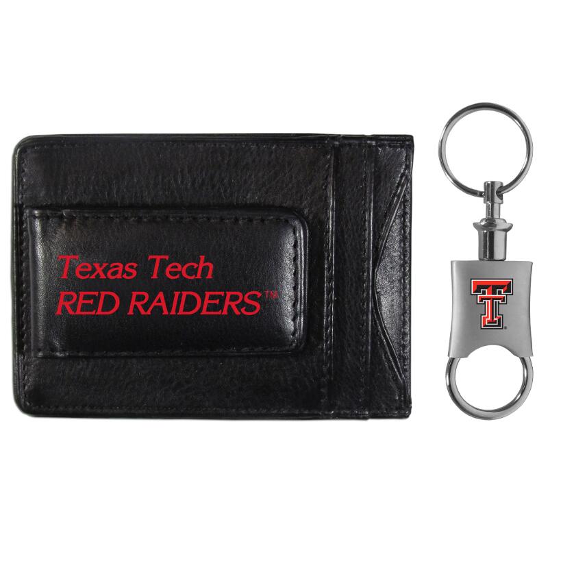 This super slim leather wallet lets you have all the benefits of a money clip while keeping the organization of a wallet. On one side of this front pocket wallet there is a strong, magnetic money clip to keep your cash easily accessible and the Texas Tech Red Raiders team logo on the front. Comes with a high-quality steel valet key chain. The key chain features to rings, one that easily detaches to easily for the valet to use so you do not have to risk giving out all of your keys.