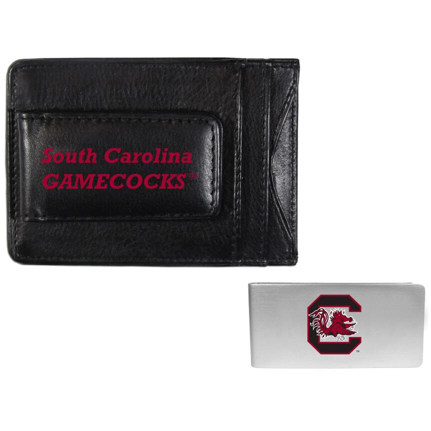 This super slim leather wallet lets you have all the benefits of a money clip while keeping the organization of a wallet. On one side of this front pocket wallet there is a strong, magnetic money clip to keep your cash easily accessible and the South Carolina Gamecocks team logo on the front. The wallet comes with separate money clip with a brushed metal finish.