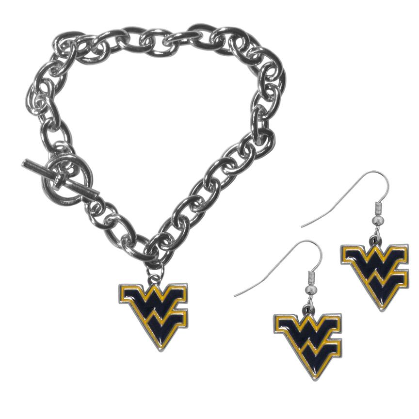 This West Virginia Mountaineers jewelry set comes with lightweight dangle earrings and a toggle chain bracelet. This sporty combo is the perfect fashion accessory for a fan looking for a fashionable way to show off her team pride.
